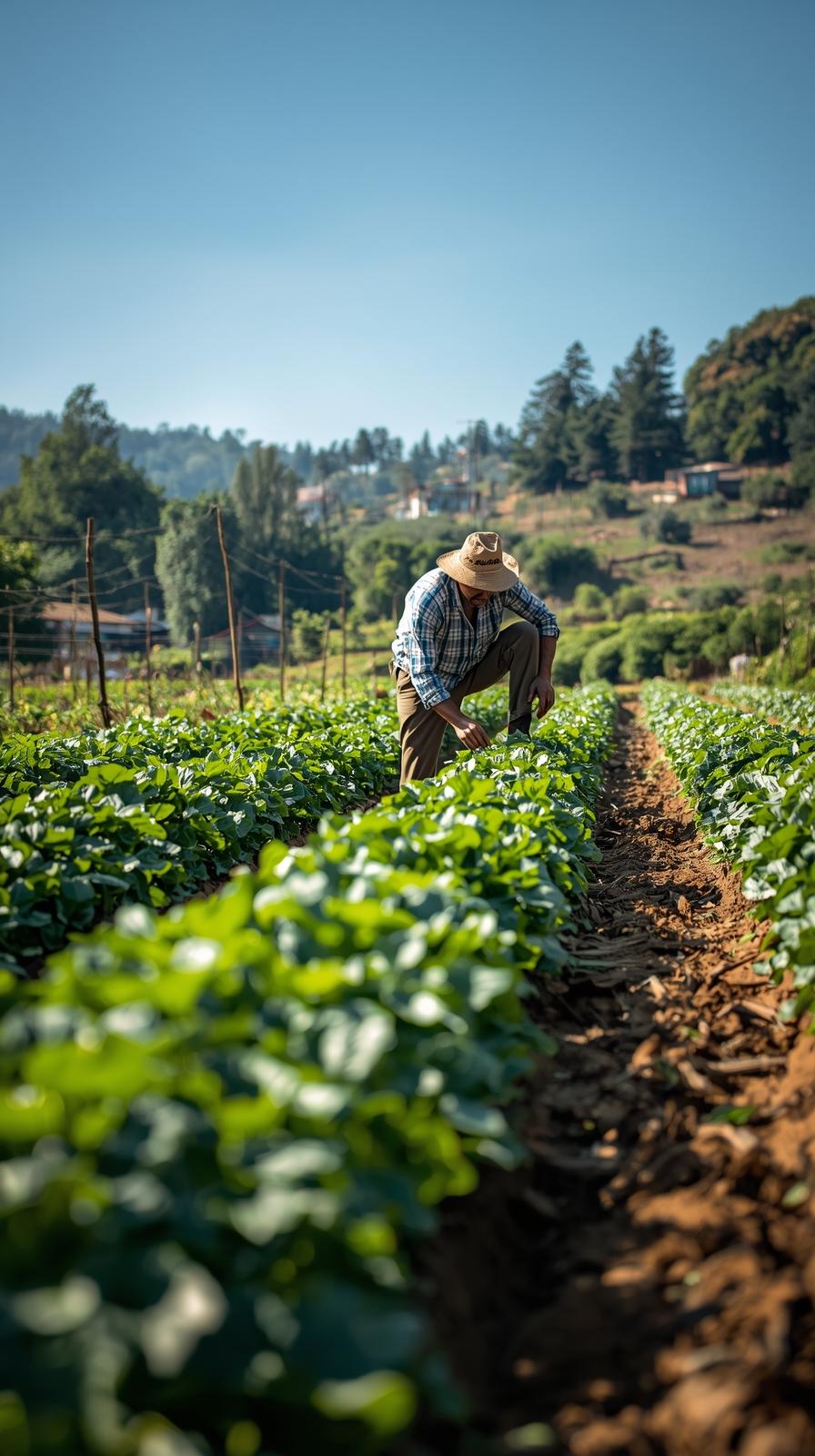 Carefully prepared hilly fields ensure perfect drainage, sunlight, and soil fertility for healthy crops.